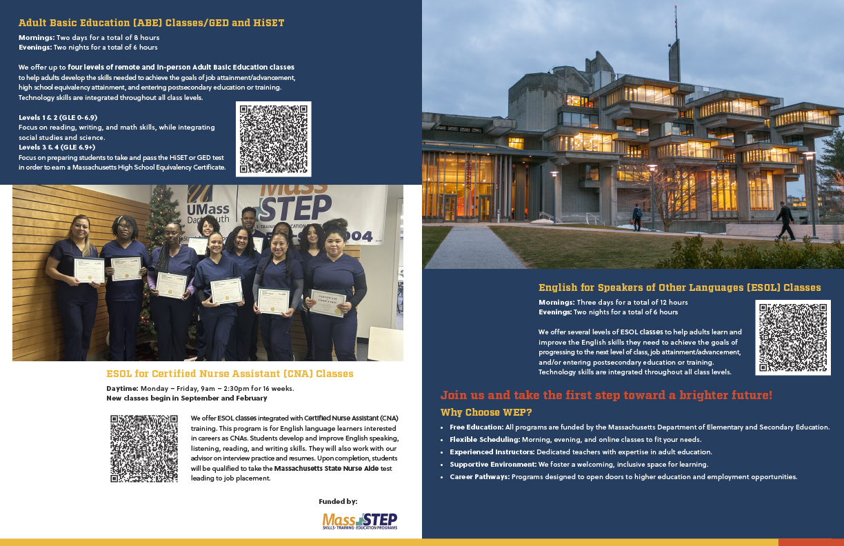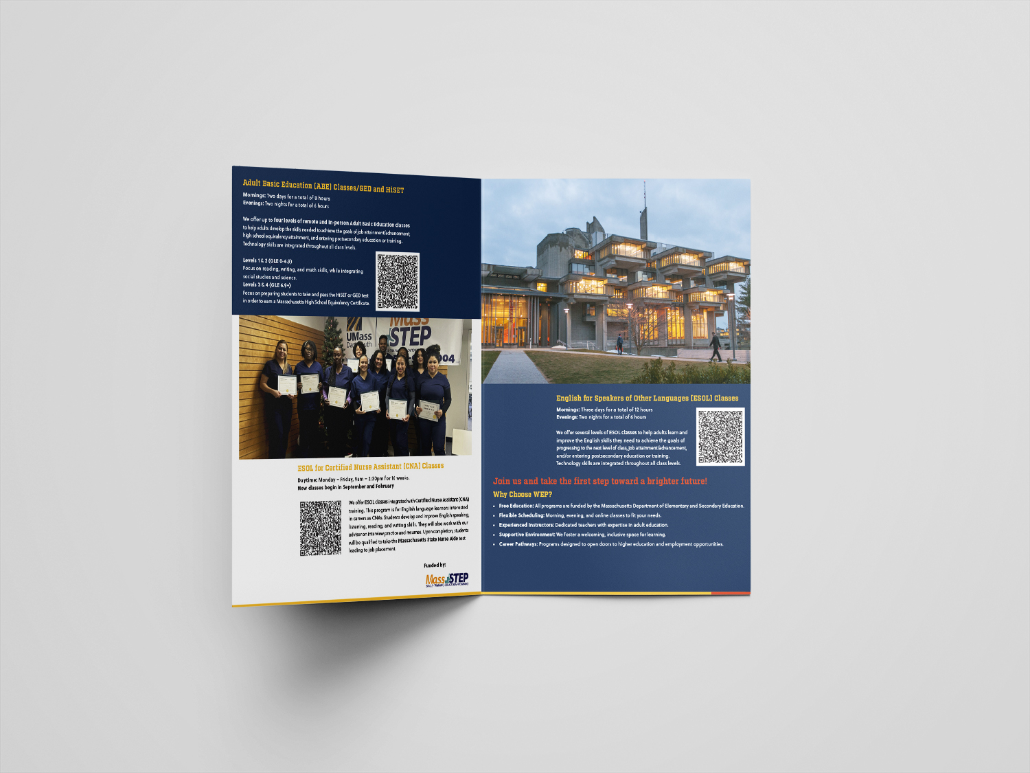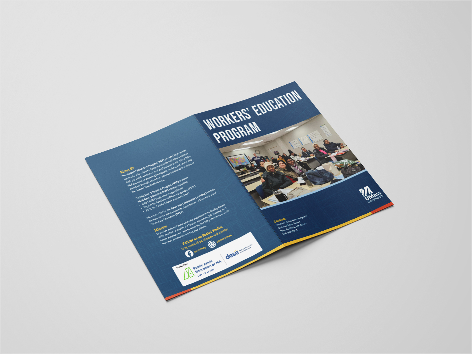 The Workers' Education Program has had no physical media to distribute that informs people about what they are. I was tasked with designing a small booklet to inform people that such a thing exists for workers to get certifications and further training in their fields.